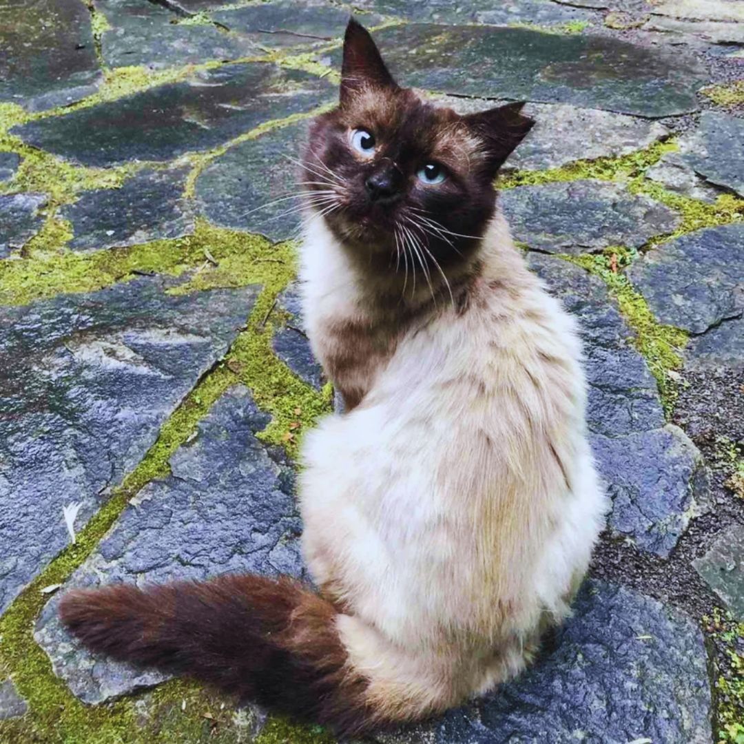 Rozy takes care of stray cats in her area and one day she saw a new cat among the group. A beautiful seal point cat quietly showed up during feeding time. The cat started returning every day & would wait outside her windows. He slowly became brave enough to walk into the kitchen to eat and let Rozy touch him. Rozy checked with neighbors & posted online to find out if anyone had lost a cat.
