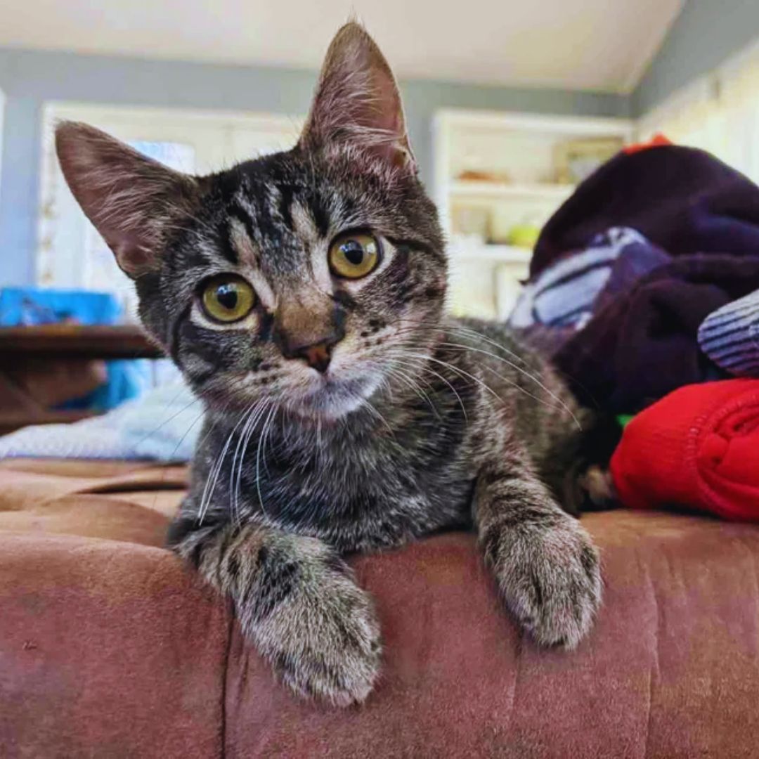 With good food comfortable beds and plenty of love, Mack really thrived & ran through the house with lots of energy. His favorite things are chasing the laser toy, climbing his cat tree and watching birds through the window. Sarah fostered Mack because she wanted to help him find a forever home. Her dad thought about him every single day though.